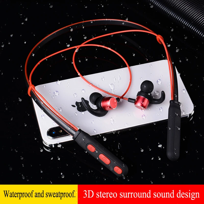 TOP Waterproof Bluetooth 5.0 Wireless Sports Headphones Stereo Subwoofer Hanging Neck Metal Magnetic Bl