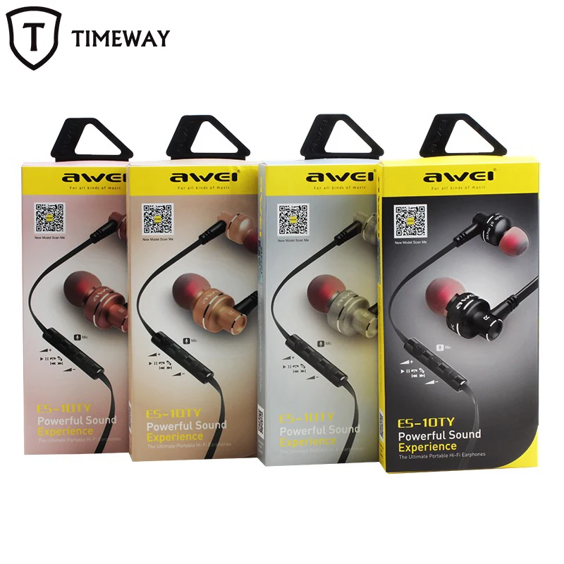 ORIGINAL awei ES-10TY TPE Wire Control Earphone with Mic For iPhone iPad Galaxy Huawei Xiaomi LG HTC and Oth