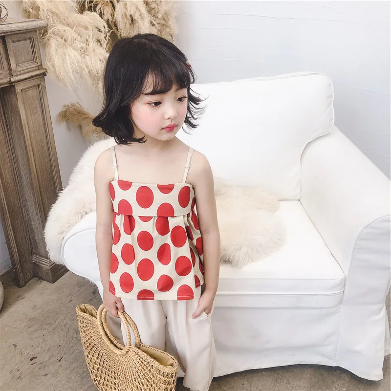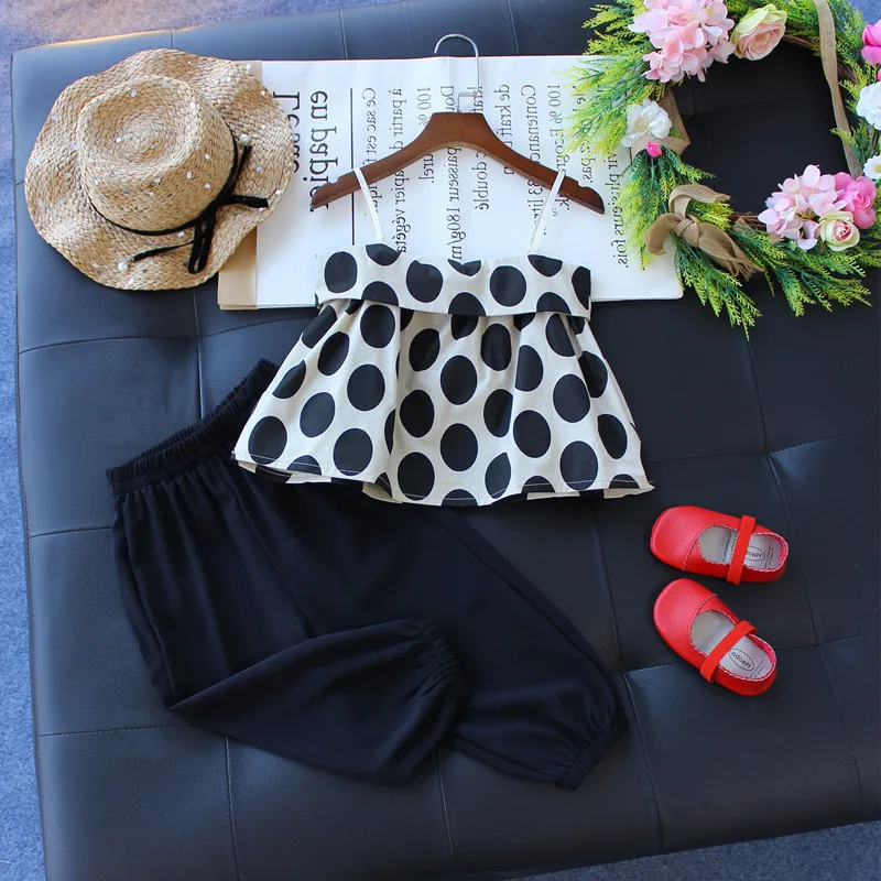 Best Seller Cotton baby girls clothes set for kids summer clothes sets dot tops+pants 2peces children sport sui