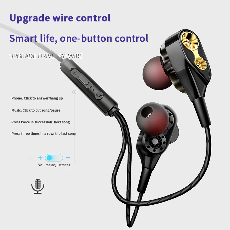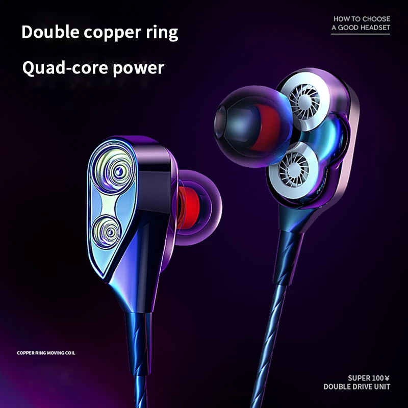 Double Dynamic Circle Wired Earphone 3D Stereo Heavy Bass Effect for iPhone X XS MAX 6 6s 7 8 9 plu